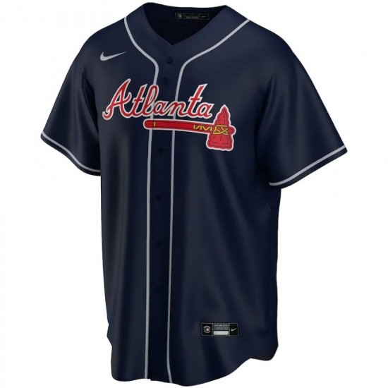 Men's Atlanta Braves Nike Navy Alternate Replica Team Jersey This jersey features moisture-wicking fabric to keep you cool and dry while you cheer on the Atlanta Braves. The crisp graphics and customized detail will ensure you're the envy of your fellow fans.
