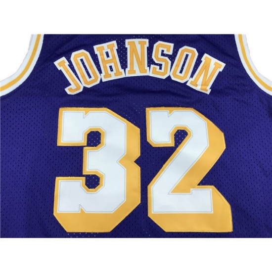 Men's Los Angeles Lakers Magic Johnson #32 Mitchell&Ness Purple 84-85 Hardwood Classics Jersey