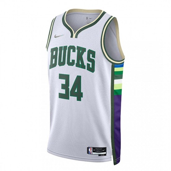 Men's Milwaukee Bucks Giannis Antetokounmpo #34 Nike White 21/22 Swingman NBA Jersey - City Edition